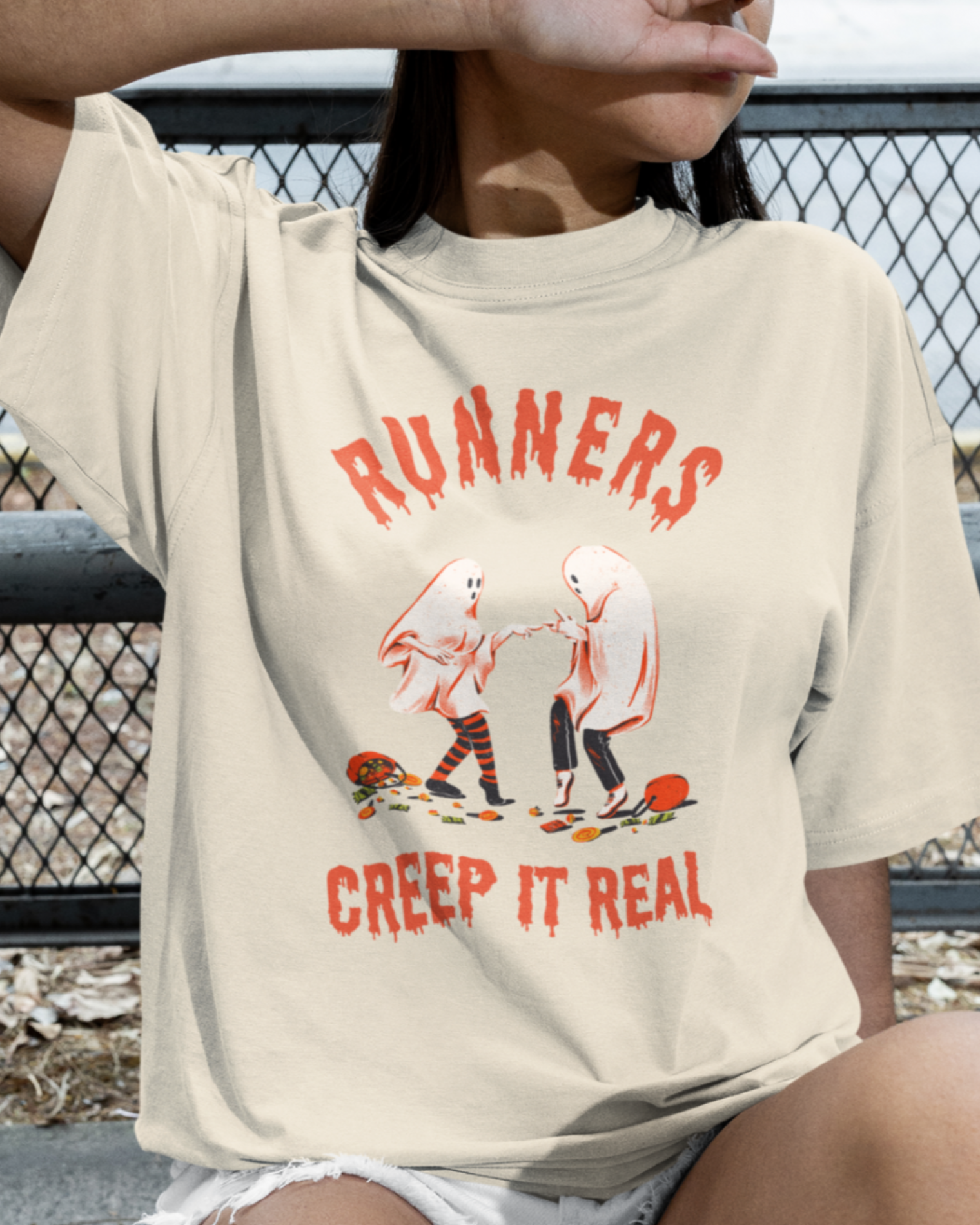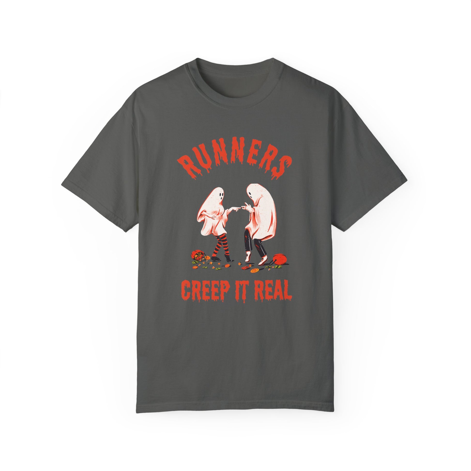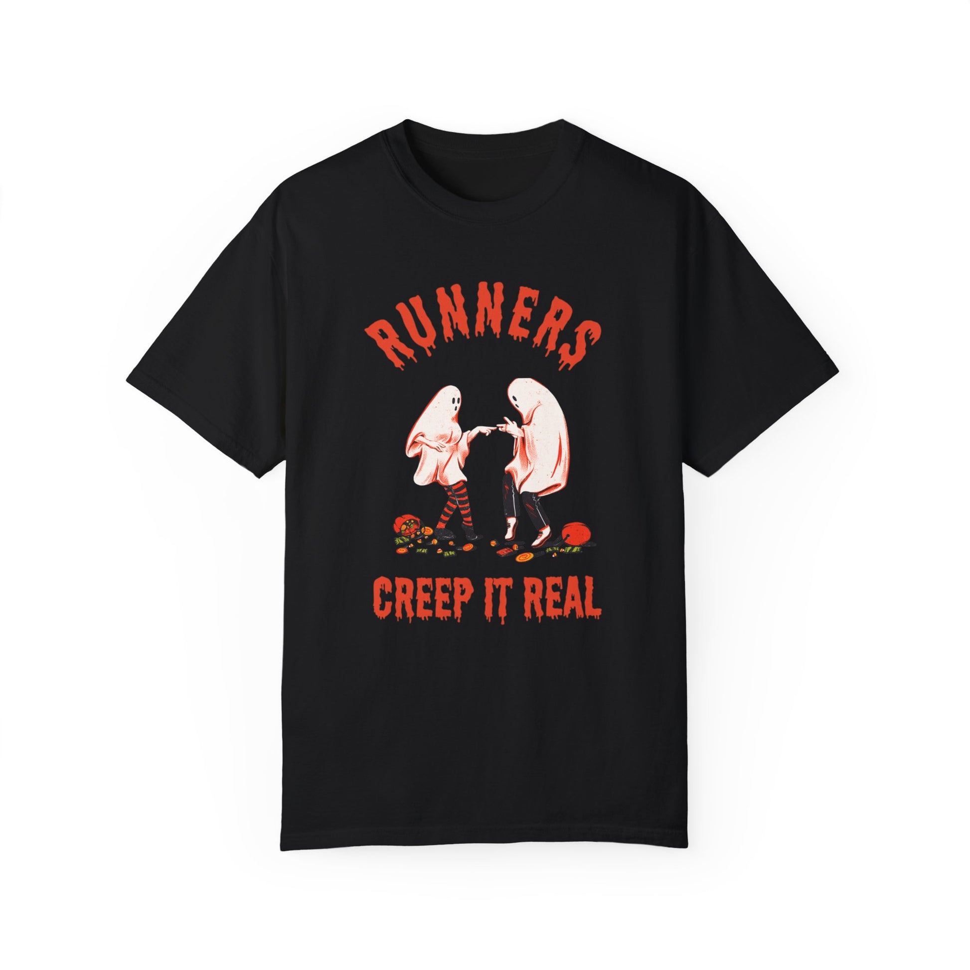 Keep it spooky and fun with our retro-style tee for runners who like to creep it eerie. Perfect for running errands or chilling with a pumpkin latte. Wherever you are, runners, creep on.